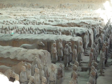 発掘場所にずらーっと並んでいる兵馬俑もあれば、