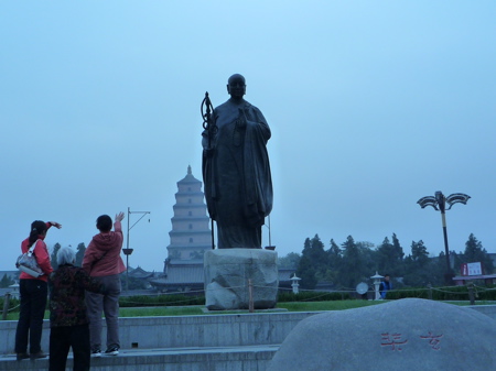 正面には三蔵法師の大きな銅像。